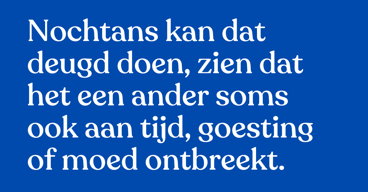 Een lijstje met alle Goodcopy overwinningen of fiere vinkjes is bovendien niet representatief. Wij moeten namelijk, net als gij, leven met de onoverbrugbare kloof tussen onze fantastische plannen en de werkelijkheid van budgetten, stakende crèches en de occasionele werf. Dat ziet ge niet op Instagram he! Nochtans kan dat deugd doen, zien dat het een ander soms ook aan tijd, goesting of moed ontbreekt.