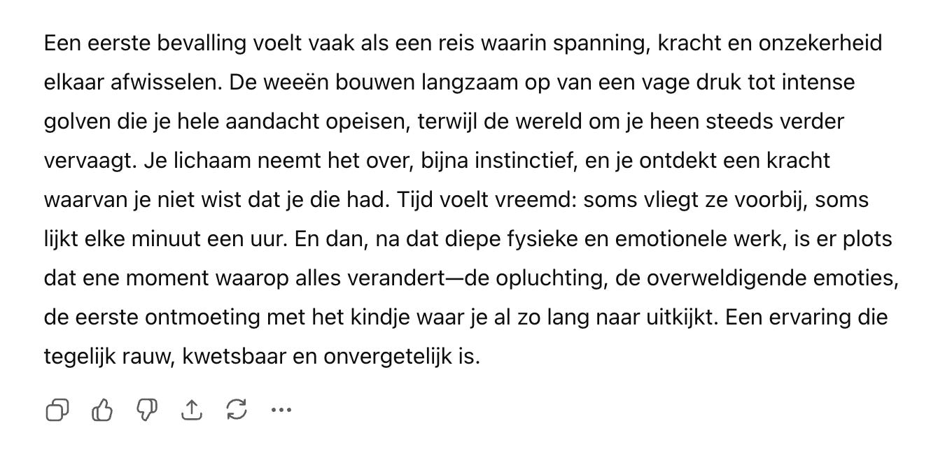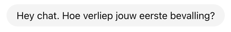 Plausibel en redelijk. Echt, ik zou het bijna geloven. Ik doe even een tegenvoorstel op de vraag “Hoe verliep jouw eerste bevalling.” (Spoiler: ik heb wél tijd doorgebracht in een verloskamer.)