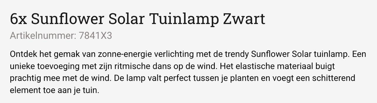Eindelijk een tuinlamp die omvalt tussen mijn planten! En trendy én uniek, op de koop toe. Het gerief staat goedkoop vandaag, en de copy precies ook. Maar we kunnen ons er wel lekker vrolijk over maken. Schitterend!